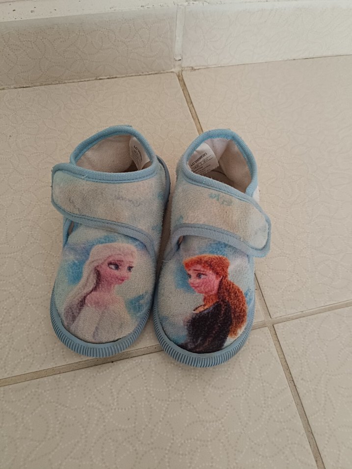 arka kısmı biraz incelmiş kesinlikle yırtık sökük yokturKız çocukları için pastel mavi baskılı, yumuşak kürk kumaştan yapılmış sıcak terlikler. Kolay giyilebilmesi için cırt cırtlı bantlıdır.