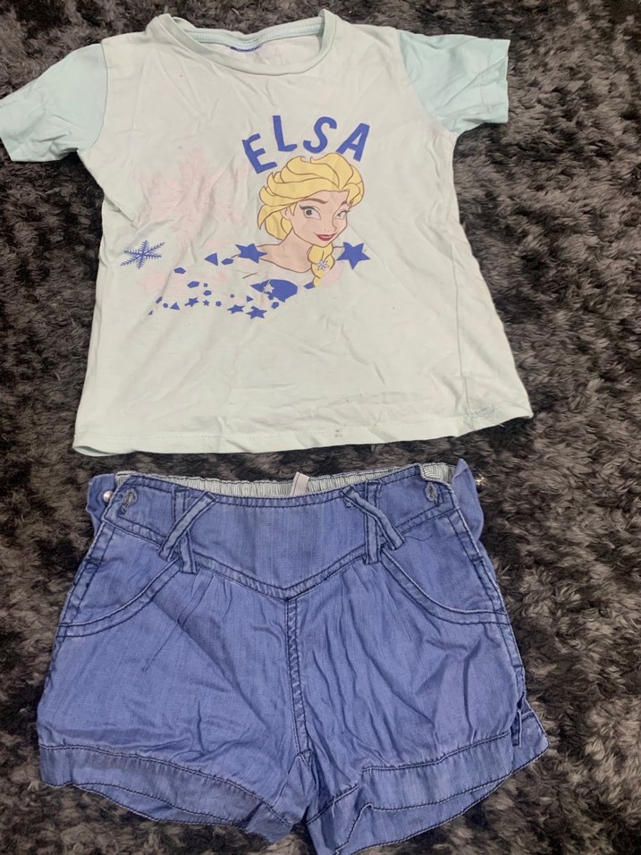Kız çocukları için Elsa baskılı, kısa kollu, bol kesim tişört ve düğmeli mavi denim şort. Rahat ve sokak tarzı uyumlu.şortun yanında tişörtü hediye gönderiyorum