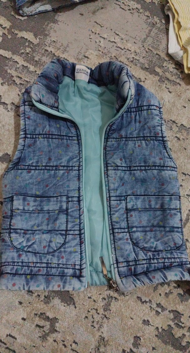 Kız Çocuk Mavi Batik Desenli Fermuarlı Yelek