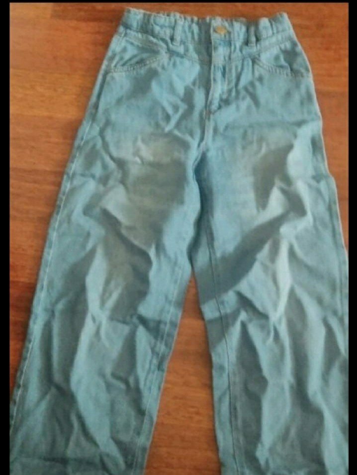 kiz çocuklar için bol kesim, pastel tonlarda mavi denim pantolon. Rahat ve şık sokak stili için uygundur.