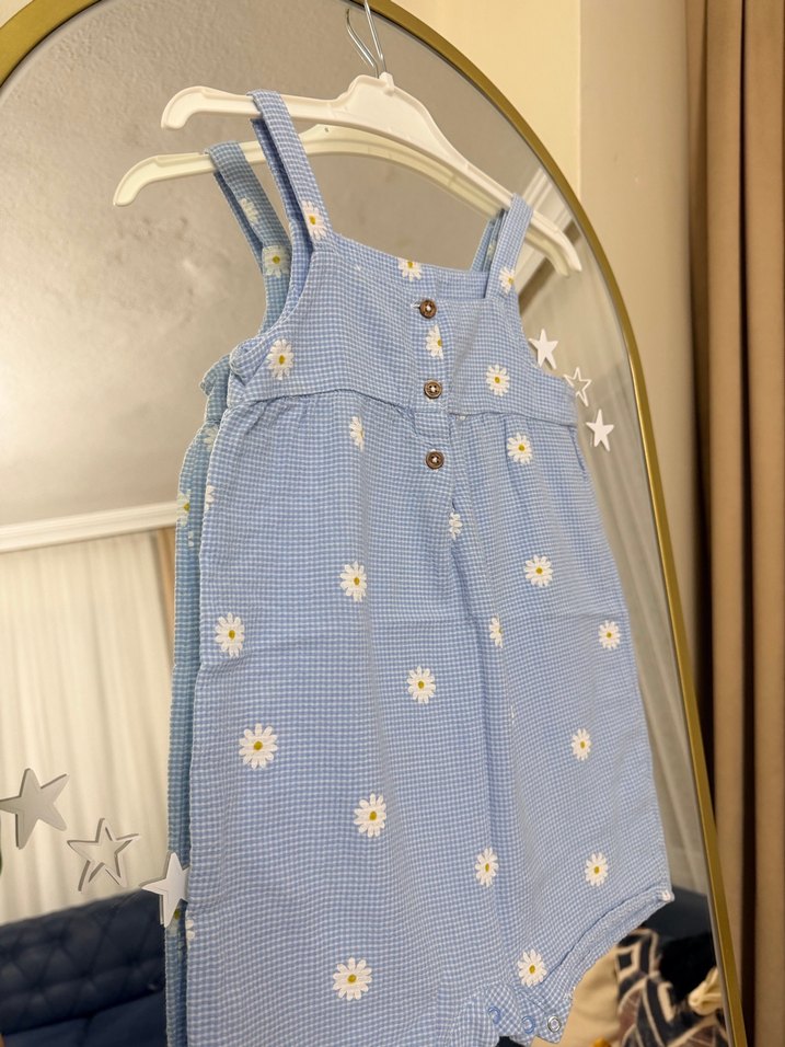 Kız Çocuk Mavi Çiçekli Askılı Tulum 2-3 yaş