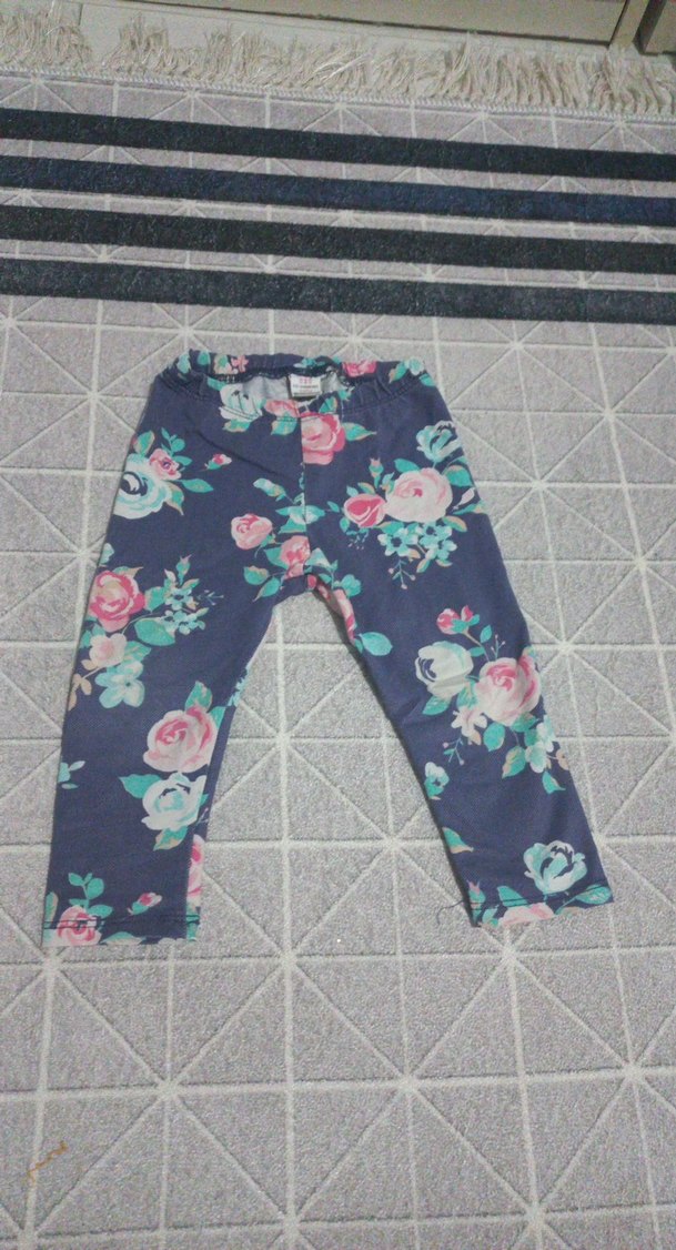 Mavi çiçek desenli, elastik bel bantlı, kız çocukları için fitted denim tayt. temiz ürün iade almıyorum