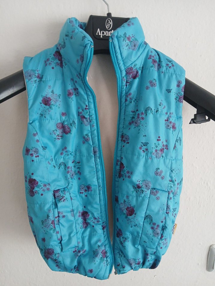 Kız Çocuk Mavi Çiçekli Yüksek Yakalı Yelek