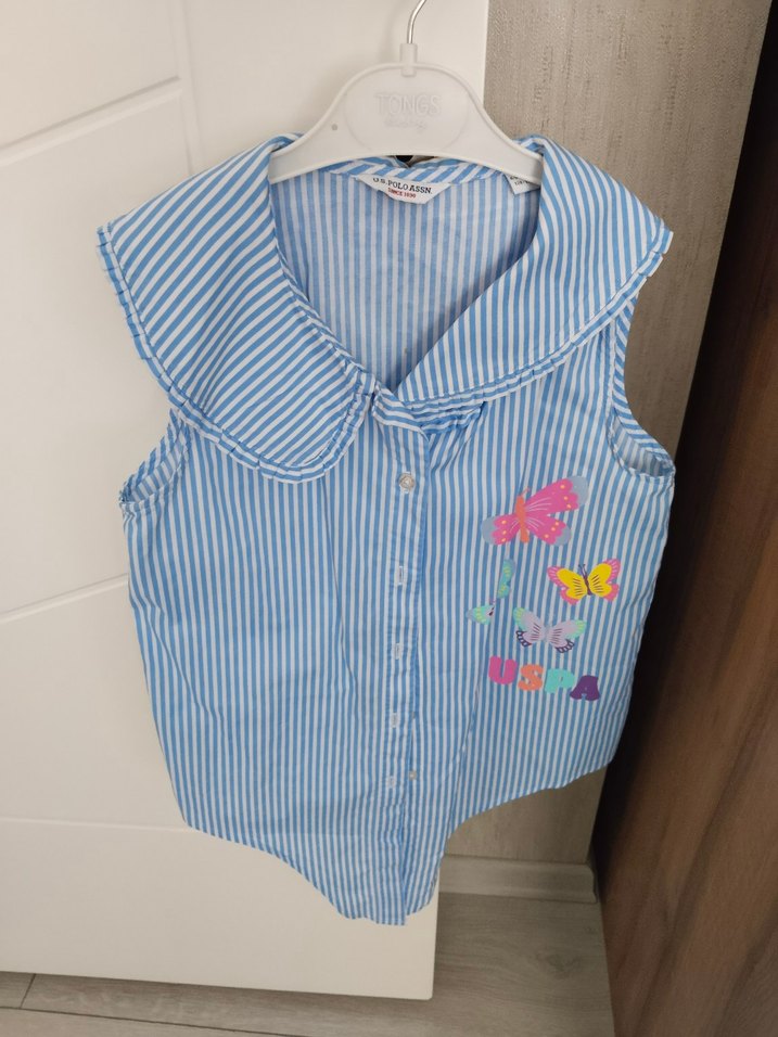 Kız Çocuk Mavi Çizgili Düğmeli Bluz