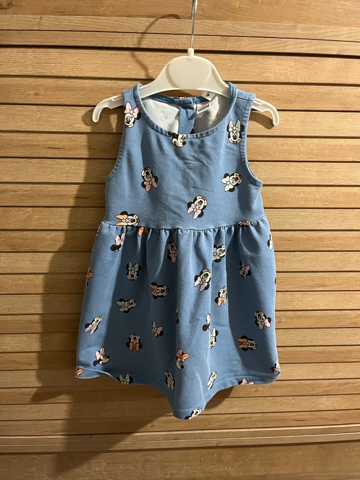 Kız Çocuk Mavi Denim Baskılı Elbise