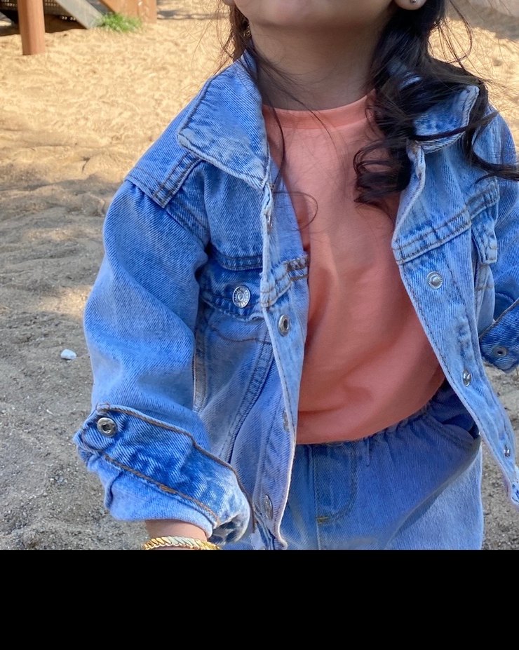 Düğmeli ve bisiklet yaka, bol kesim mavi denim kız çocuk ceketi, trend sokak stili için uygun.