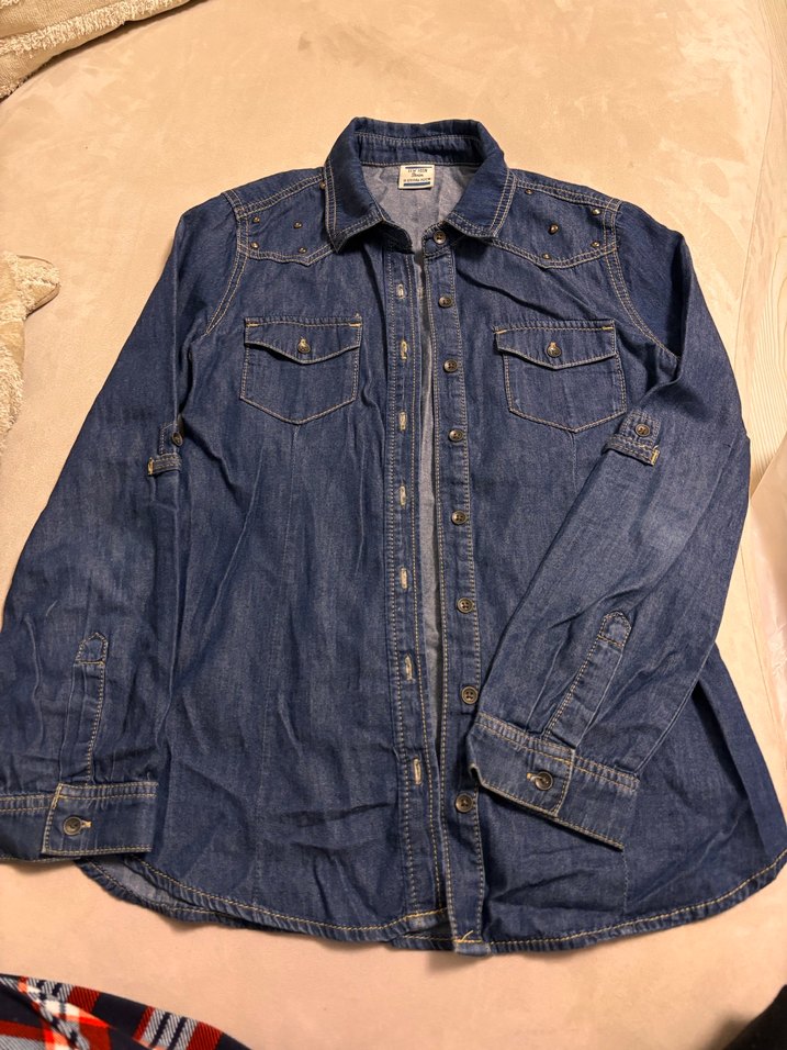 Kız çocuk için uzun kollu, düğmeli ve notalı yakalı bol kesim mavi denim ceket. Parlak mavi renkte, günlük kullanım için uygundur.