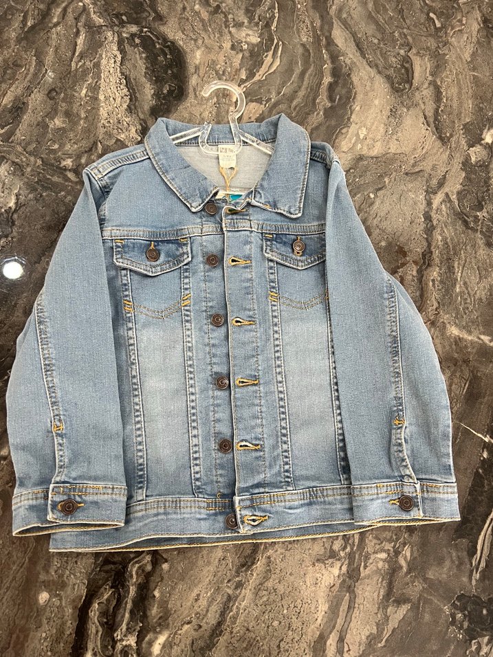 4/5 yaş Mavi renkli, düğmeli ön kısma ve kesik yakaya sahip, kız çocuklar için fitted denim ceket.