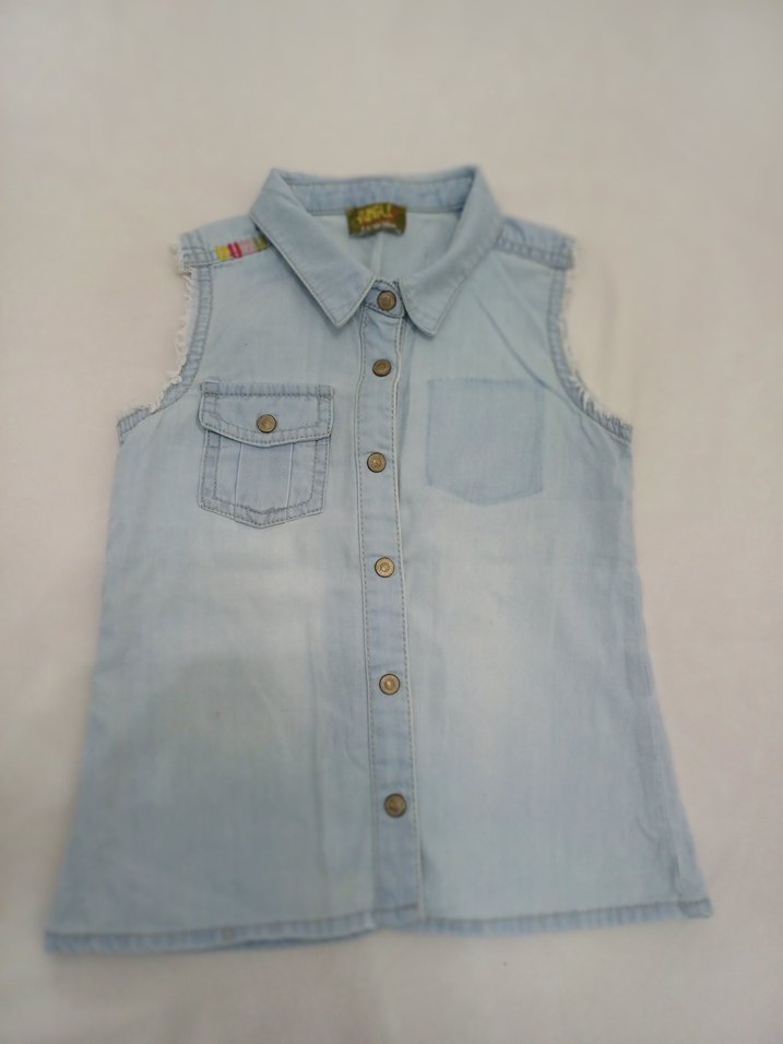 Kız Çocuk Mavi Denim Düğmeli Yelek