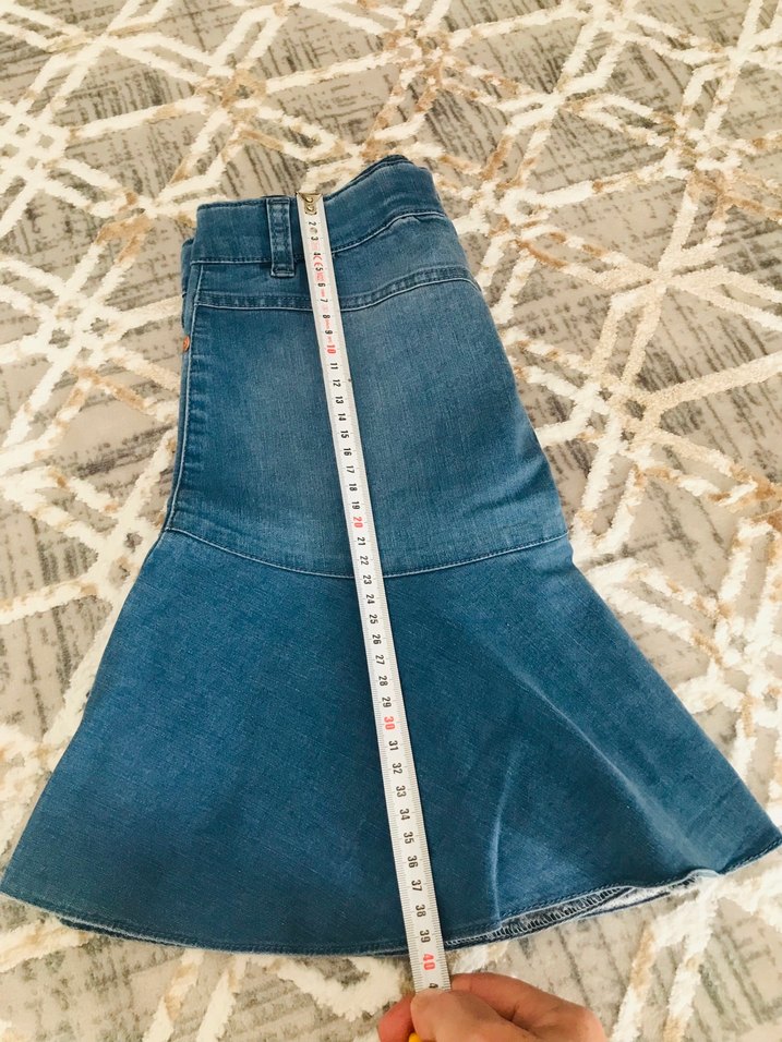 Kız çocuklar için mavi renkli, elastik bel ve genişleyen kesime sahip fitted denim midi etek, günlük rahat kullanım için uygundur.