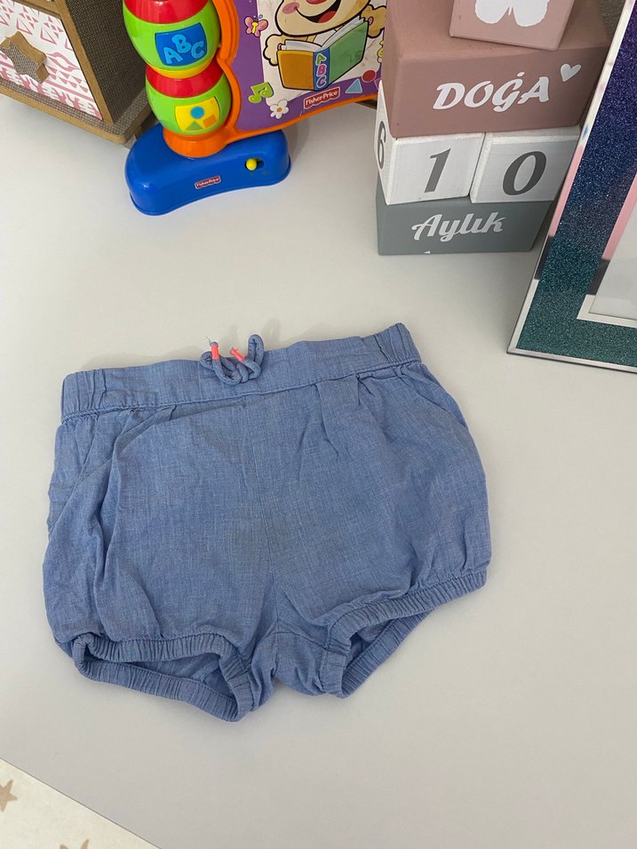 Kız çocukları için elastik bel bantlı, rahat kesim mavi denim şort. Günlük ve sokak stiline uygun.