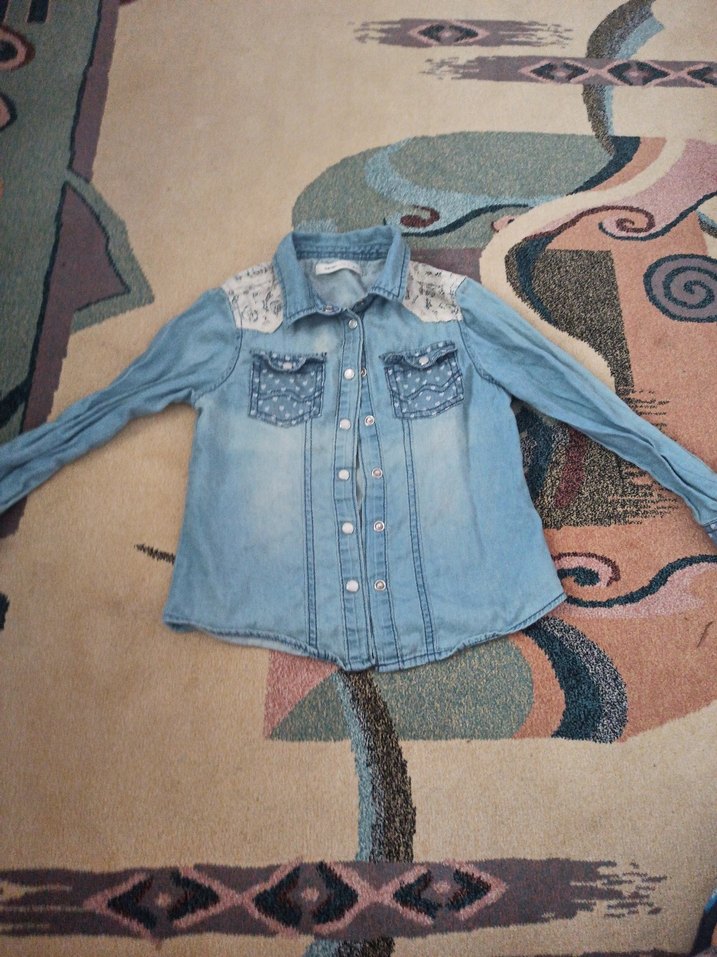Kız çocuk için uzun kollu, yakalı denim gömlek. Düğmeli dantel desenlidir, sokak tarzına uygundur.