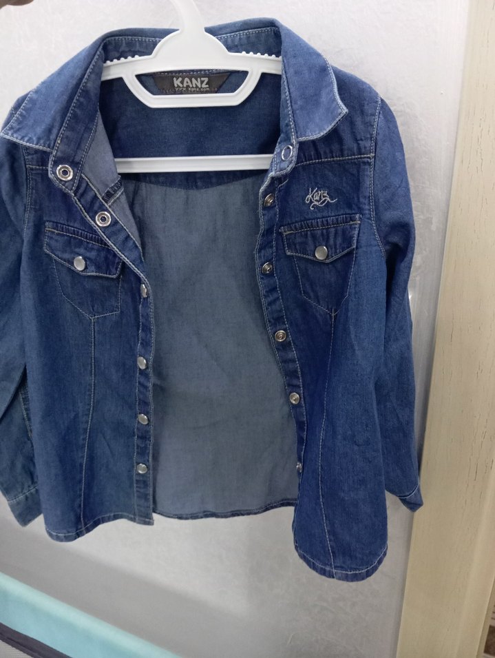 Kiz Cocuk Mavi Düğmeli Denim Ceket