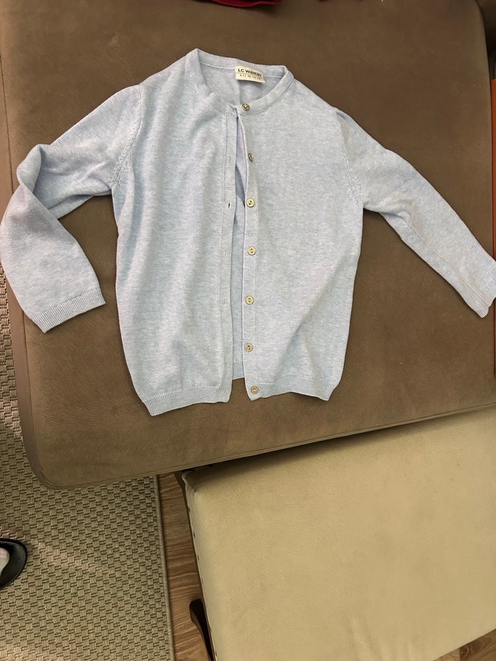 Kız çocuk için düğmeli, uzun kollu pamuk hırka. Gri renkte, bol kesim ve sade tasarım sunar.