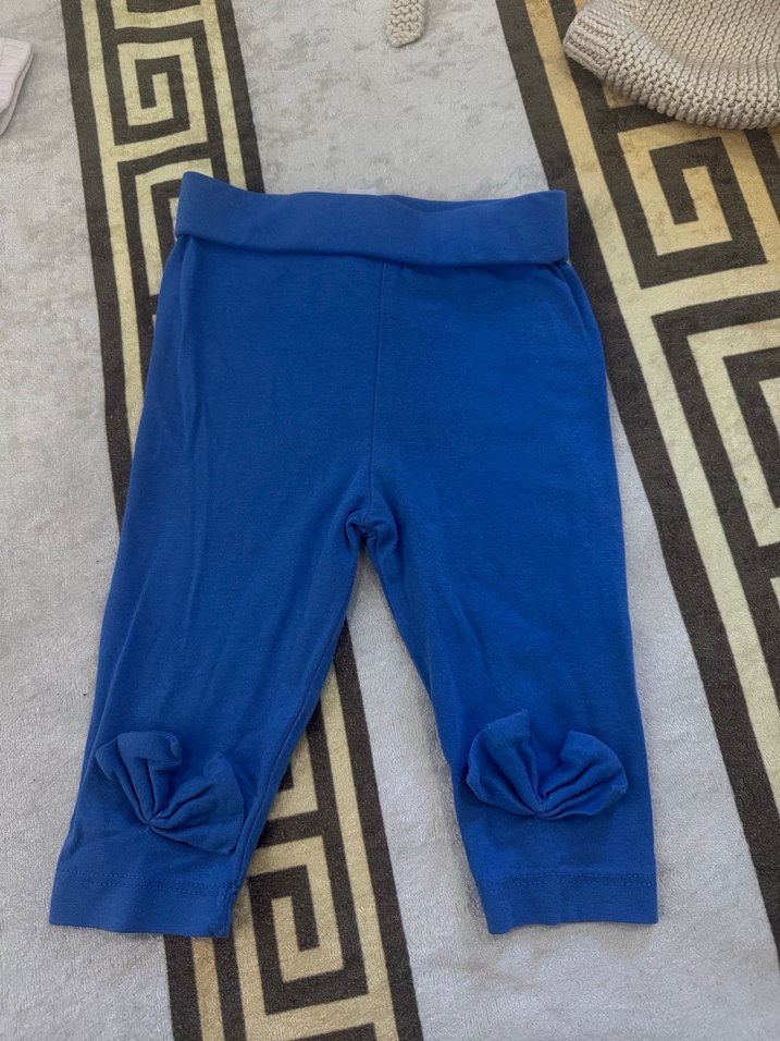 Kız çocukları için elastik belli, yumuşak ve sıcak kumaştan mavi tayt. Düz ve desensiz, sokak stili için uygun.