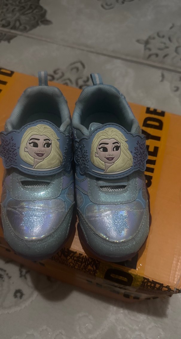 Renkli mavi Elsa kız çocuk spor ayakkabısı, tokalı ve önünde baskılı karakter detayına sahip, kauçuk malzemeden üretilmiştir.