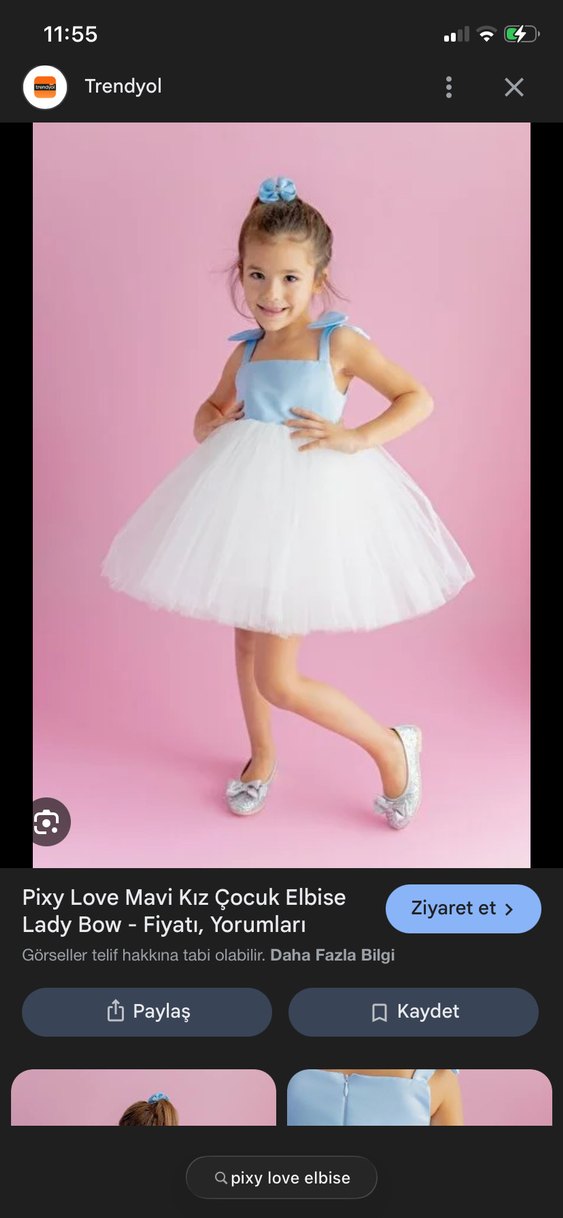 Kız Çocuk Mavi Fiyonklu Tüllü Elbise
