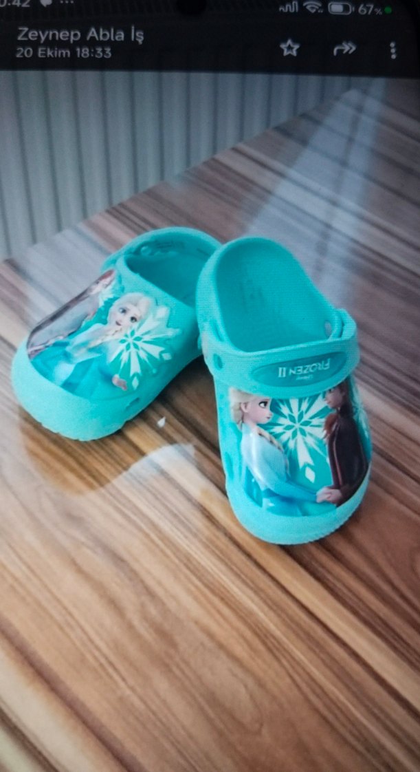 Mavi renkli, frozen ve kroks kız çocuk terliği, rahat ve trend bir görünüm sunar. ❄️