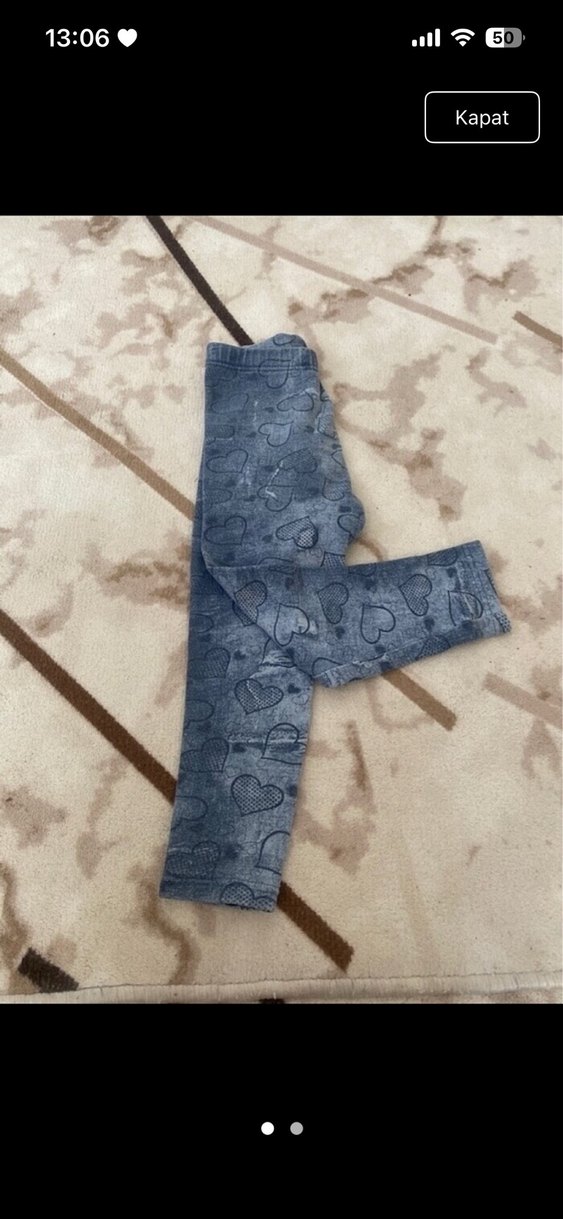 Kız Çocuk Mavi Kalpli Denim Tayt