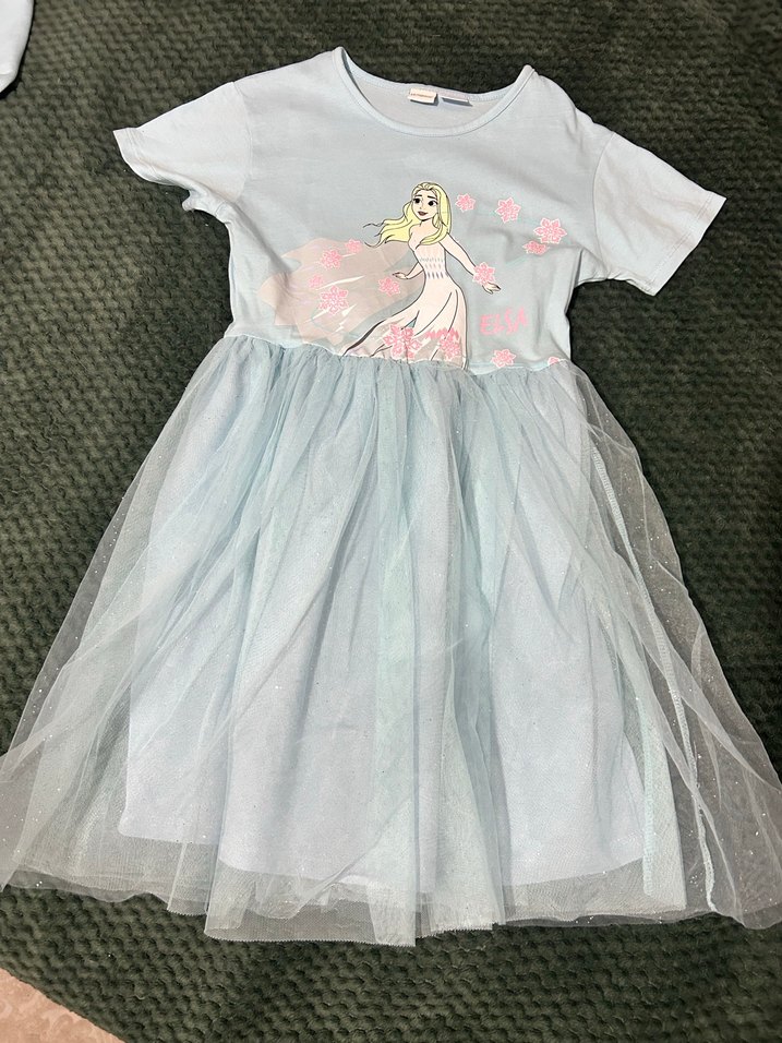 Kız Çocuk Mavi Kısa Kollu Elsa Baskılı Elbise