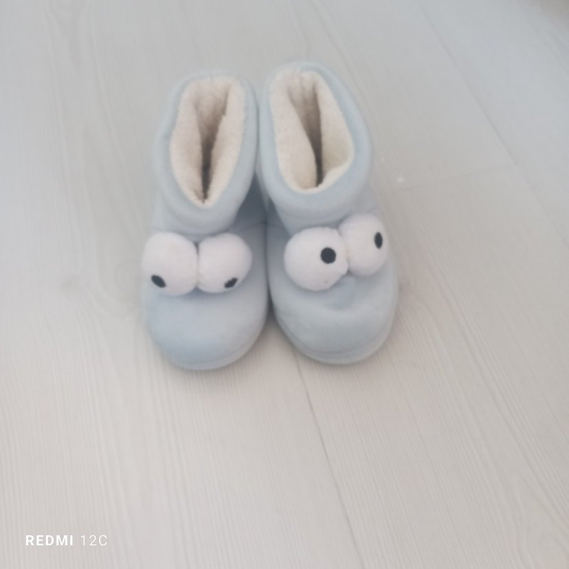 Pastel mavi kız çocuk terlikleri, içi kürklü yumuşak ve sıcak kumaştan, sokak stili için sade ve desensiz tasarlandı.