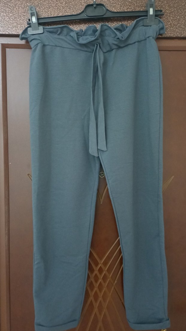 Kız çocuk için belden kemerli,bol kesim mavi tayt eşofman pantolon. Rahat kumaştan, günlük sokak stiline uygun. Bir defa giyilmiştir