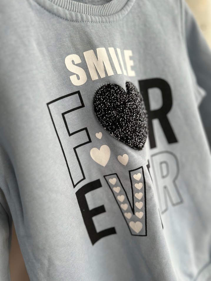 Kız Çocuk mavi önü işlemeli Sweatshirt