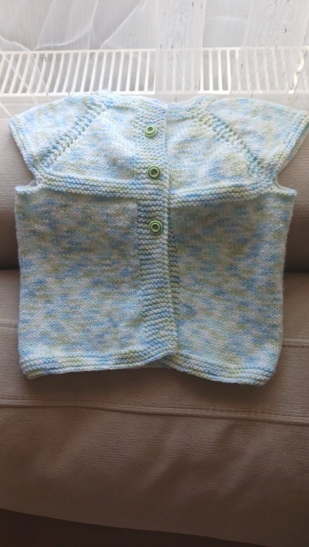 Kız çocukları için pastel mavi renkli, kolsuz, fitted kesim örgü yelek. Yuvarlak yaka ve düğmeli kapanışa sahiptir. yeni doğan bebekler için