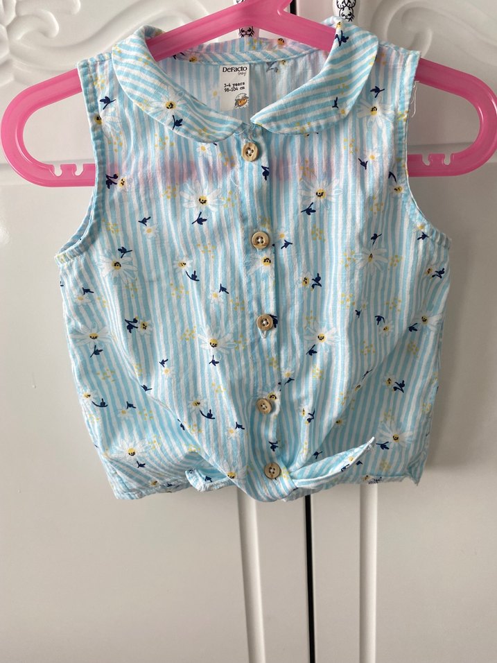Kız Çocuk Mavi Pamuklu Kolsuz Gömlek