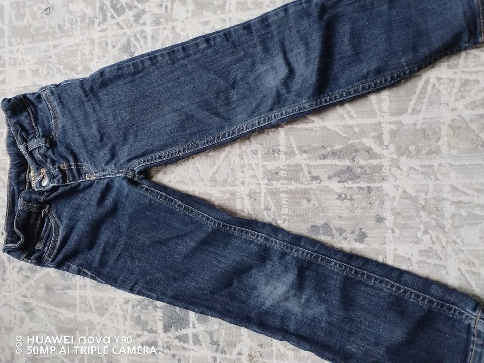 kız çocuklar için mavi renkli, dayanıklı denimden yapılmış slim fit kot pantolon. Pratik cırt cırtlı kapanışa sahiptir.