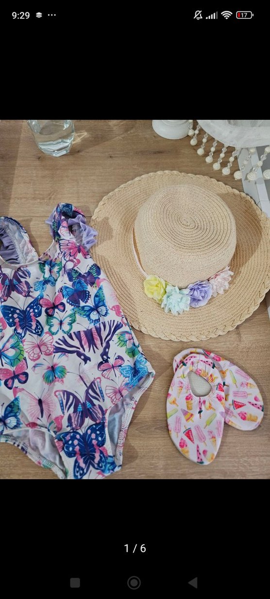 Canlı pastel renklerde kelebek desenli, dantel detaylı kız mayosu, bohem tarz için uygun. şapka ve patikler de dahil dir 3 lu olarak satılıyor