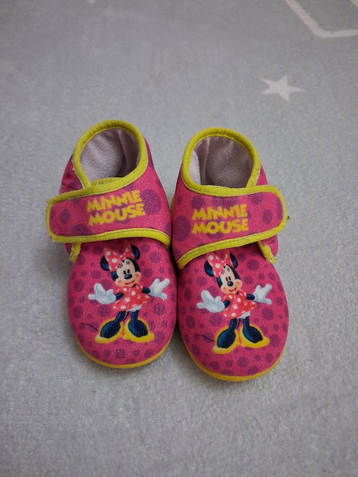 Pembe fleece kumaştan yapılmış, Minnie Mouse baskılı ve cırt cırtlı kız çocuk ev terliği. Renkli ve trend casual stil sunar. disney minnie mouse kız çocuk panduf ev ayakkabısı. 24 numara. temiz sağlam durumda. cırtları temiz hasarsız birtek cırt yerlerinde kumaş aşınması war. #kızçocukpanduf #mickeymousepanduf #minniemousepanduf #minnemousekreşayakkabısı #kreşayakkabısı #evayakkabısı