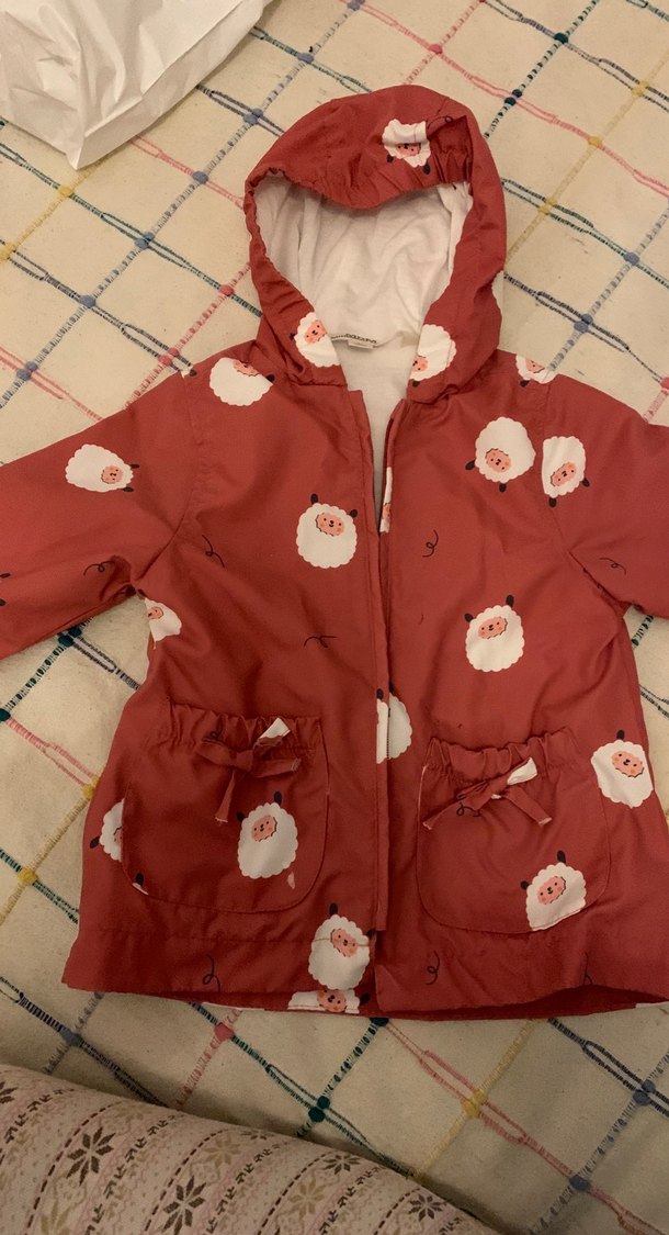 Gül kurusu kuzucuk baskılı mont. İçi penye astarlı. Hiçbir kusuru yok
