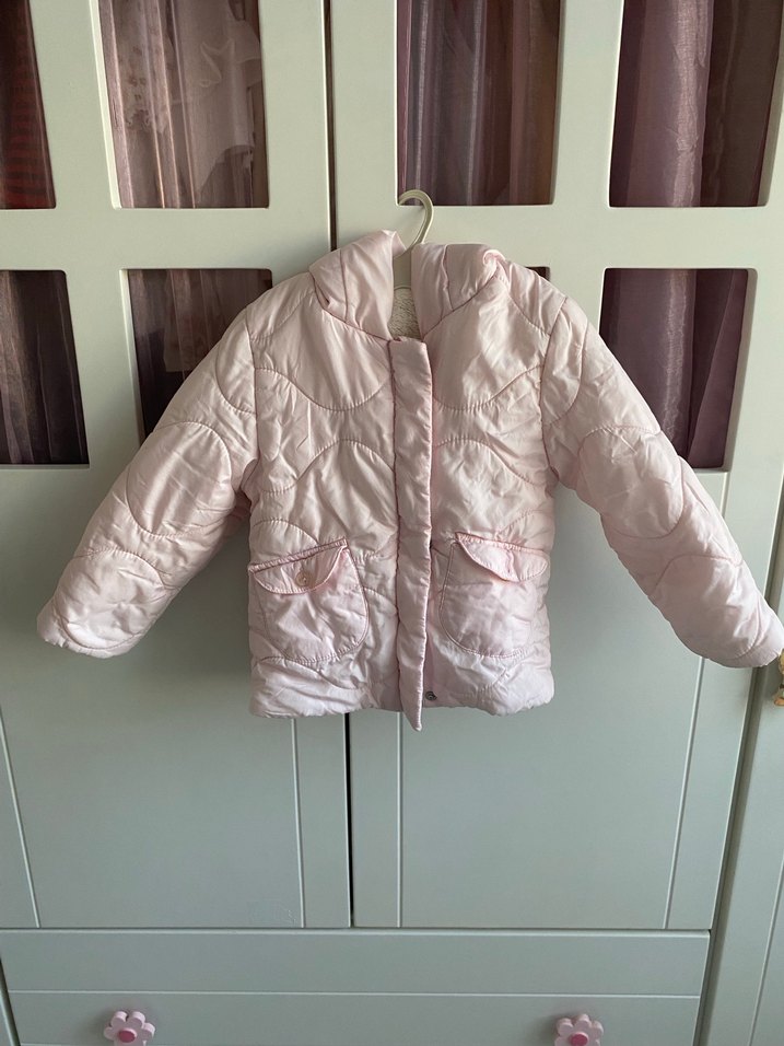 , fitted kesim, pastel pembe kız çocuk mont. Notch yaka ve ön cepler bulunur. Yumuşak, sıcak kumaştan yapılmıştır. İc kısmı kürklüdür. En ust yaka kisminda 1 tane cit citi dusmustur. Fermuarli oldugu icin citcit sorun yaratmiyor. Baska hcibir sorunu problemi yoktur. Cocuguma kucuk geldigi icin satiliktir.