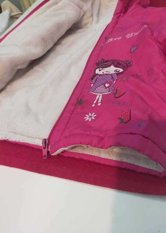 Kız çocuk mont fuşya pembe sorunsuzdur.fermuar çalisiyor defosu yok.1.5yaş 3yaş arasi giyilebilir..#kızmont#cocukmont#mont#bebekmont