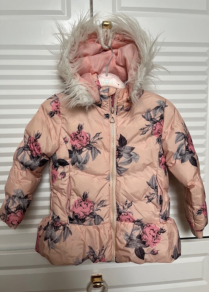 Üç yaş arası kız çocuk mont sadece fermuarında biraz soyulma var
