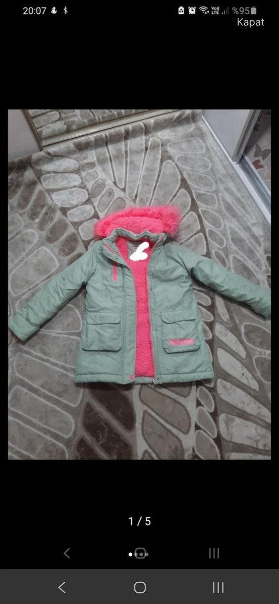 Kız çocukları için yeşil ve pembe renkli mont