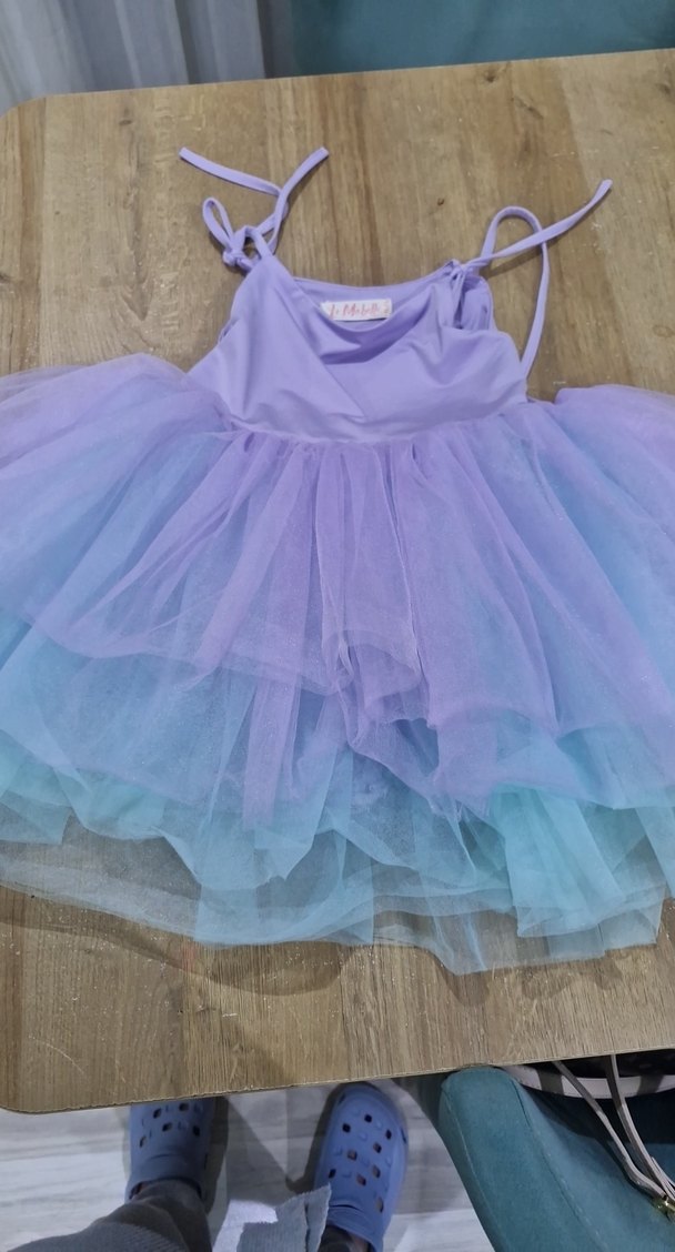 Kız çocuklar için fitted kesim, straplez yaka ve bağcıklı askılı bohem elbise. Pastel mor tie-dye desenli, fırfır detaylı ve yumuşak sentetik kumaştan üretilmiştir.