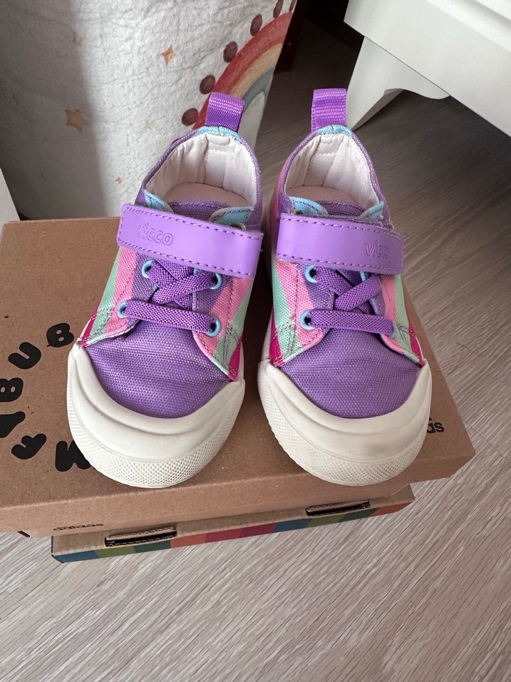 Mor pastel tie-dye desenli, cırt cırtlı ve bağcıklı kız çocuk spor ayakkabısı, kauçuk tabanlıdır. Ürün de bir problem yoktur ışıklıdır