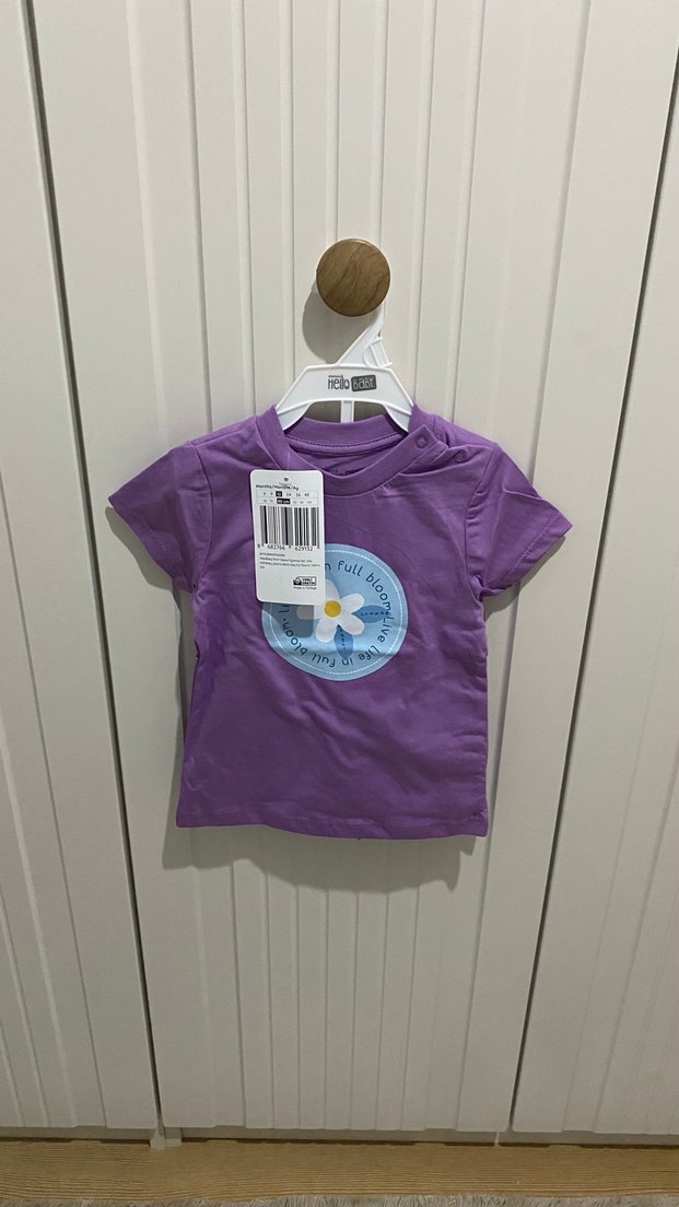 Kız çocukları için mor, baskılı ve kısa kollu, dar kesim tişört. Yumuşak ve sıcak dokulu kumaştan, günlük rahat stil için uygundur.