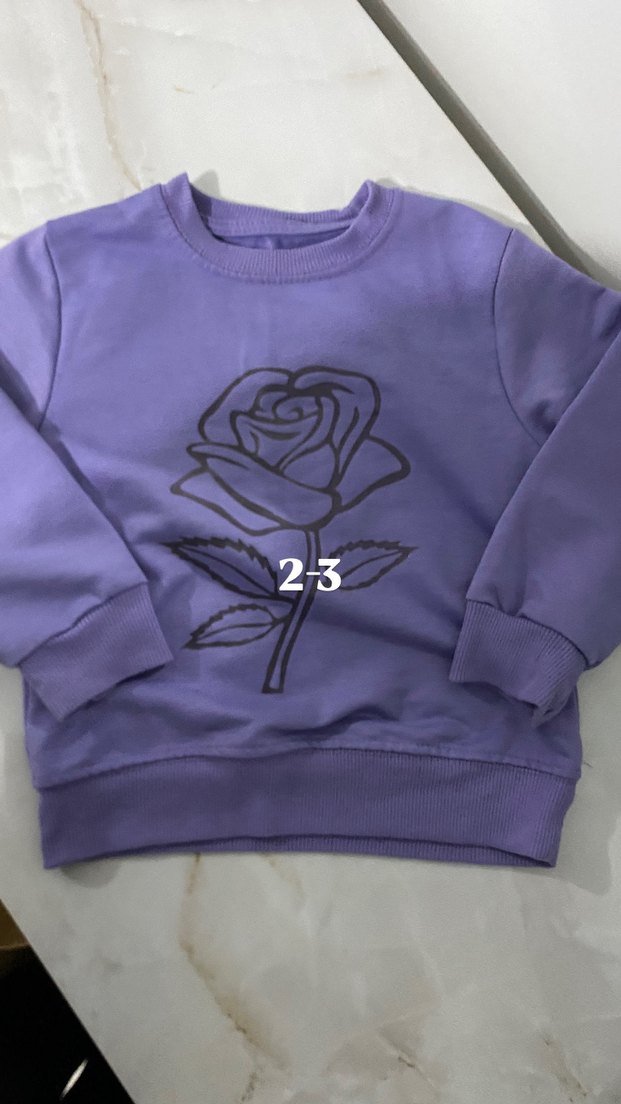 Kız çocuk mor baskılı sweatshirt, uzun kollu ve bisiklet yaka ile rahat kesim. Yumuşak ve sıcak kumaştan, sokak stiline uygun şık tasarım.