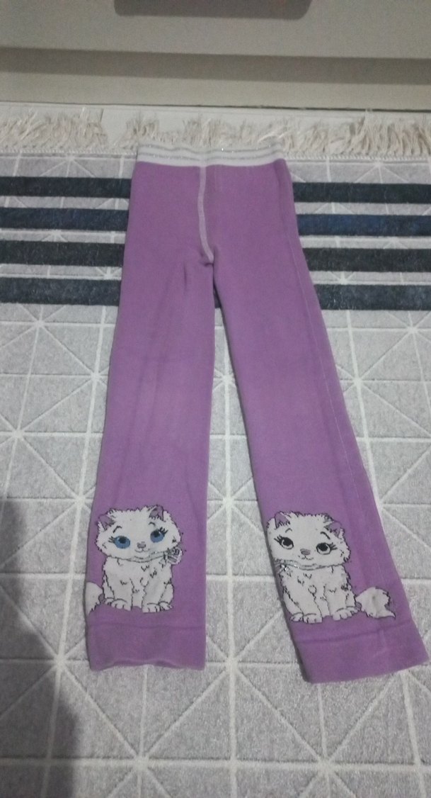 Yumuşak ve sıcak dokulu, mor renkli triko tayt, baskılı sevimli kedi desenleriyle trendy günlük stil için uygundur. temiz ürün iade almıyorum