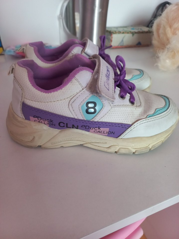 Mor detaylı, renkli tie-dye desenli kız çocuk spor ayakkabısı, kolay kullanım için cırt cırtlı bant ve dayanıklı kauçuk taban ile sokak tarzına uygun. (sorarak alinniadesi yok)