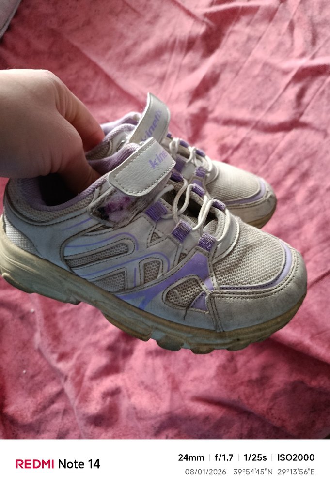 Kız çocukları için pastel mor renkli, bağcıksız ve cırt cırtlı, lastik tabanlı spor ayakkabılar. Sokak modasına uygun rahat tasarım.