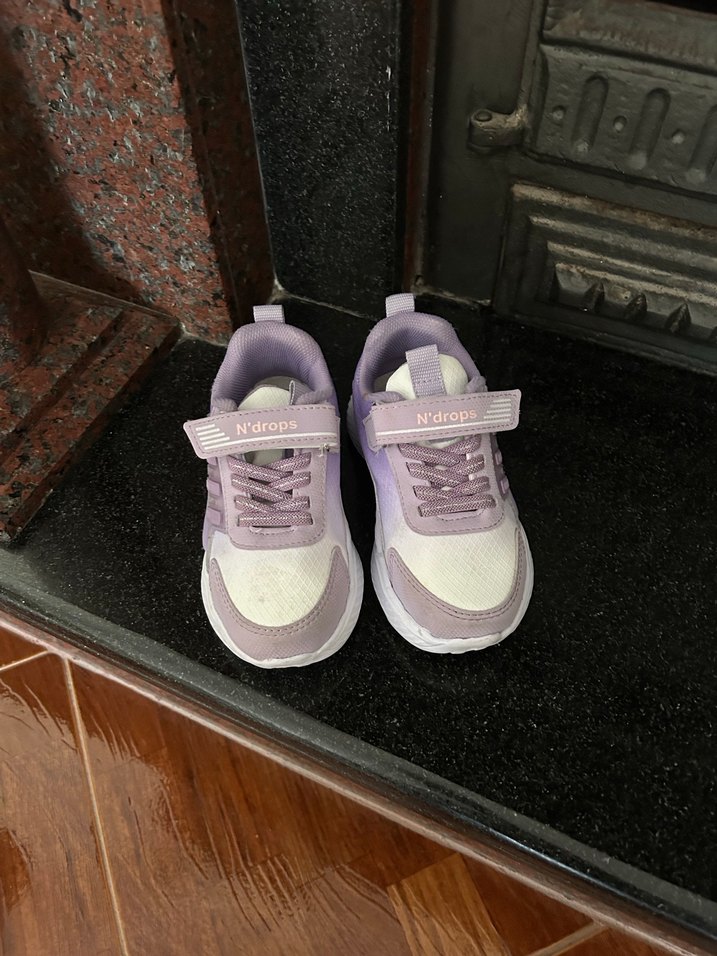 Mor renkli, pastel tonlarda batik desenli, cırt cırtlı ve kauçuk tabanlı kız çocuk spor ayakkabısı, trend sokak stili için uygun. Bir kere giyildi