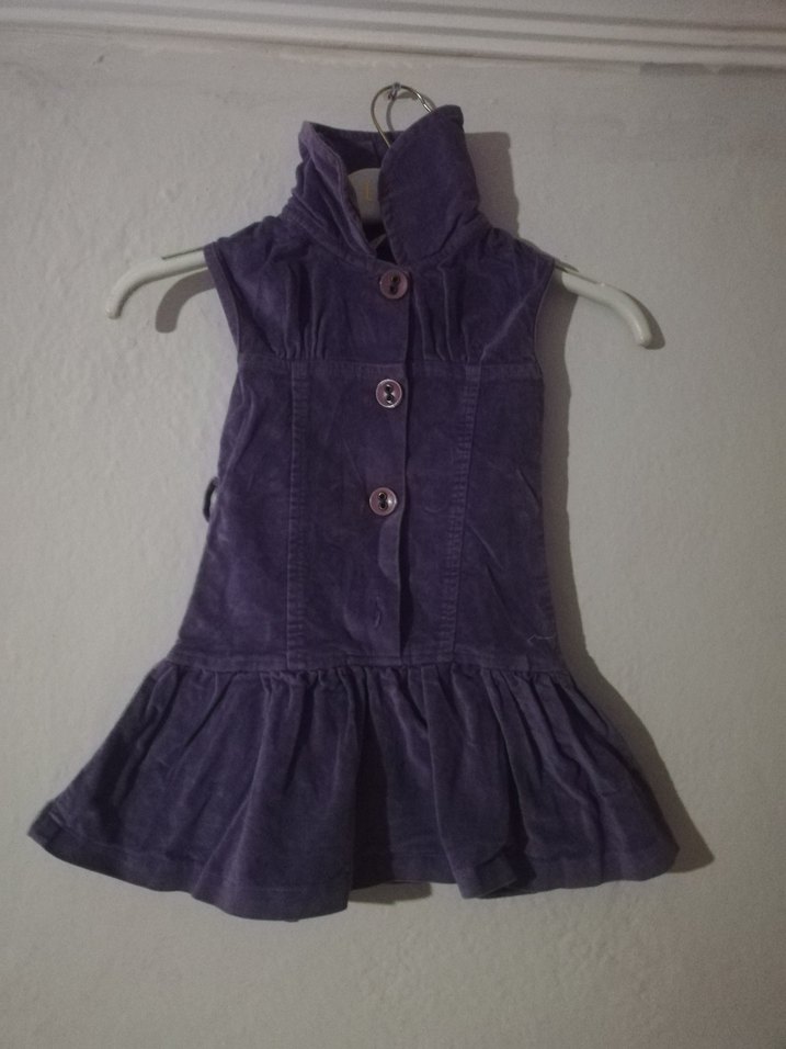 Kız Çocuk Mor Düğmeli Yüksek Yakalı Elbise