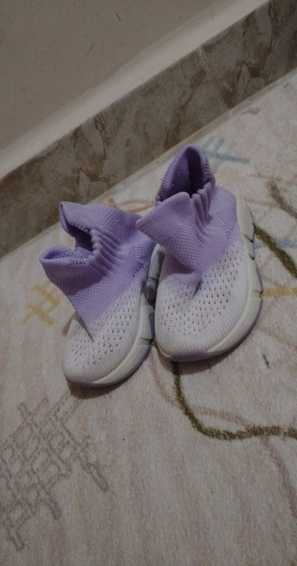 Pastel mor renkli, elastik üst kısmı ve kauçuk tabanı olan kız çocuk spor ayakkabısı, rahat ve sokak stiline uygun.