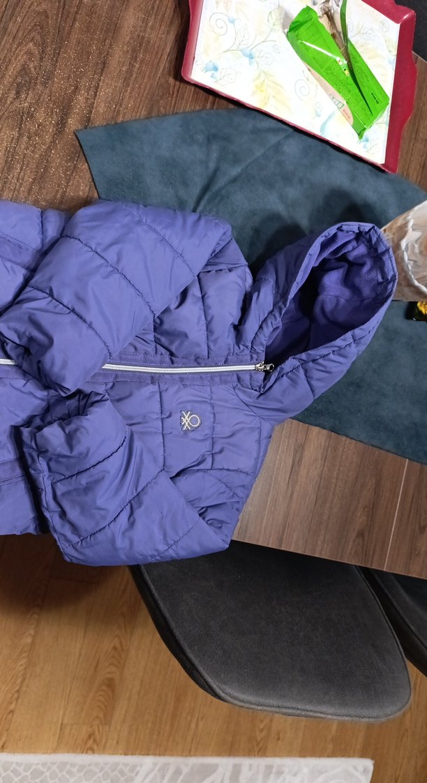 Kız çocukları için parlak mor renkte, fermuarlı ve kapüşonlu, yumuşak ve sıcak kumaştan yapılmış, fitted kesim ceket. Sokak stiline uygun.