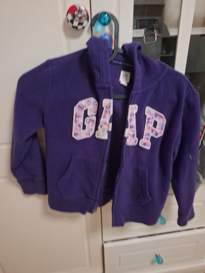 Kız çocuk mor fermuarlı sweatshirt, uzun kollu ve yumuşak, sıcak kumaştan. Yuvarlak yaka ve baskılı GAP logosu ile günlük sokak stiline uygun. 6 yas icin iyumlidur