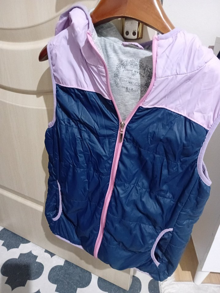 Kız çocuklar için pastel mor ve lacivert renklerde, fermuarlı, straplez, fit kesim yelek. Rahat sokak stili için uygundur.